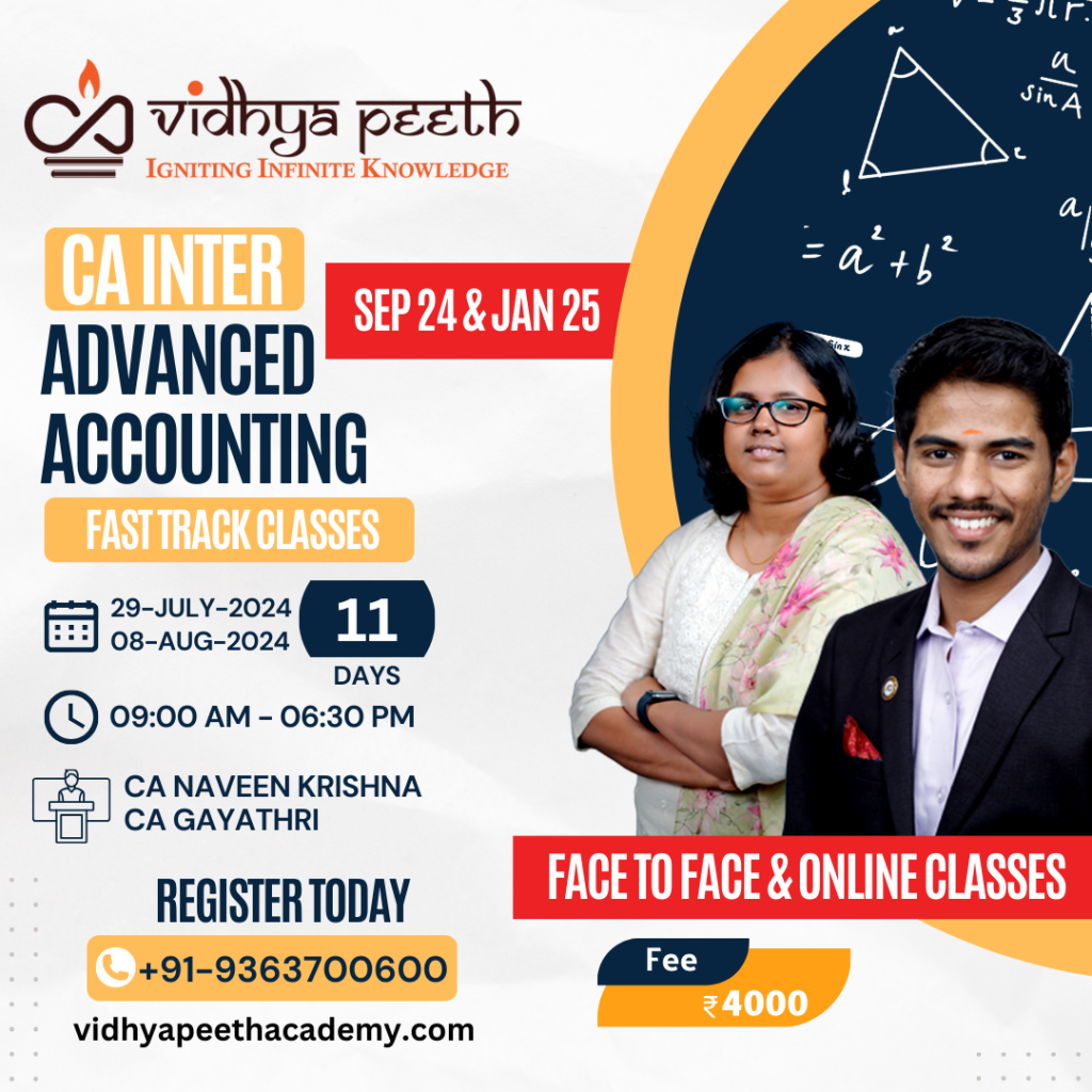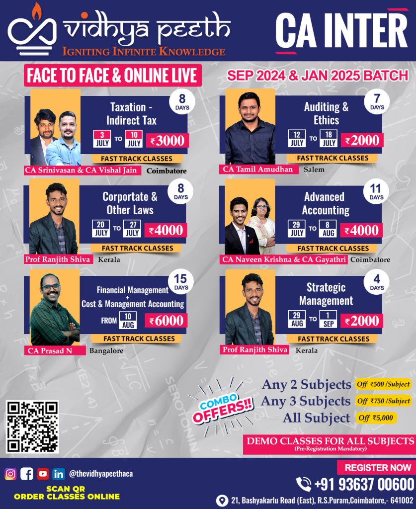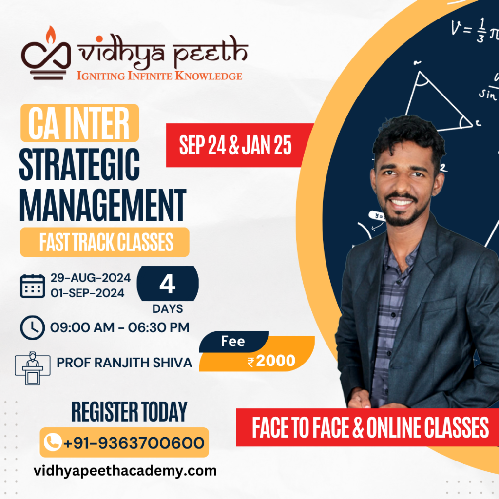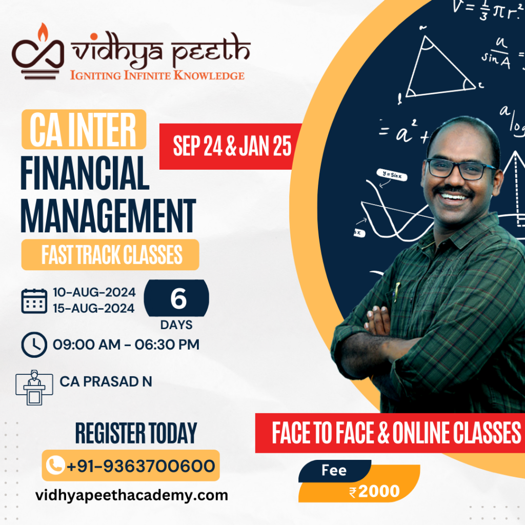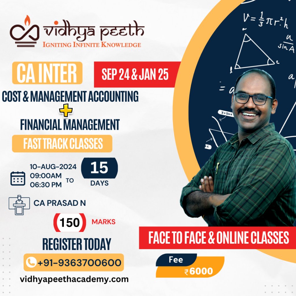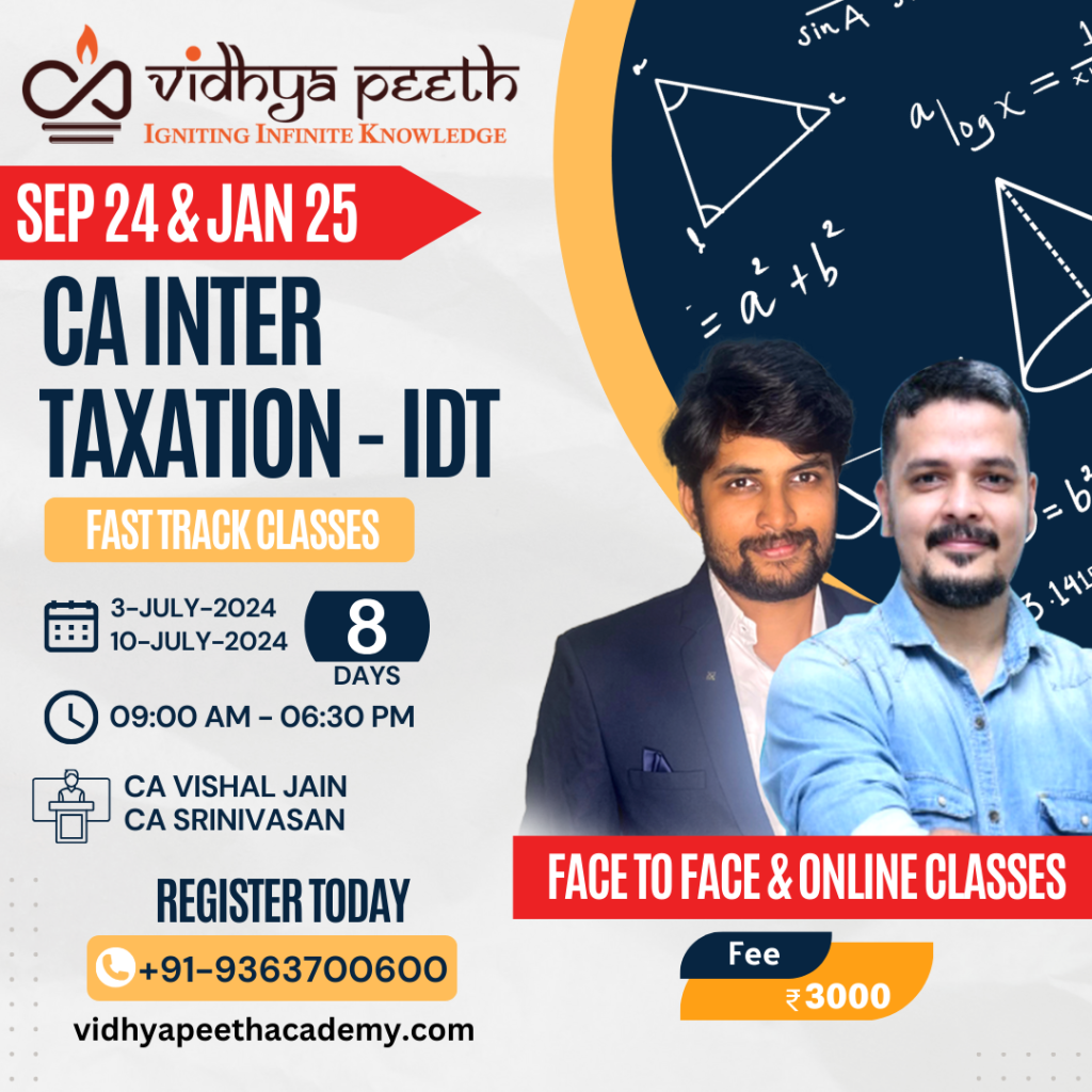 Sanjana N2024-08-21I recently completed the CA final IDT classes at Vidyapeeth, and in just 15 days, I feel confident in writing my IDT paper. The classroom environment was motivating, with numerous inspiring quotes that added to the learning experience. Each and every doubt was addressed with utmost clarity, and every concept was linked with a live practical example, making it easier to grasp and remember. Highly conceptual teaching helped me to thoroughly understand and retain the topics. The provided material, filled with pictorial icons and summaries, has also been incredibly helpful. Thanks to Vishal sir and Praveen sir for their invaluable guidance. I would highly recommend studying under them.